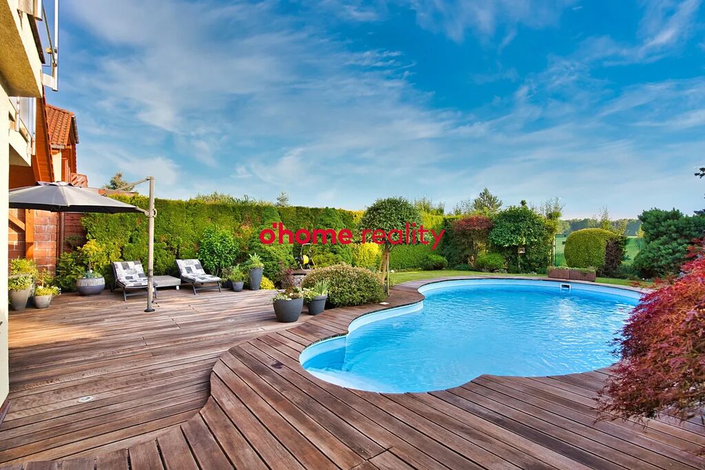 Skvostem této nemovitosti je však nádherná a pečlivě udržovaná zahrada s rozlehlým zapuštěným bazénem a luxusní kanadskou vířivkou. Tato oáza klidu je perfektním místem pro letní grilování, relaxaci na sluníčku nebo večerní posezení u sklenky vína s přáteli.