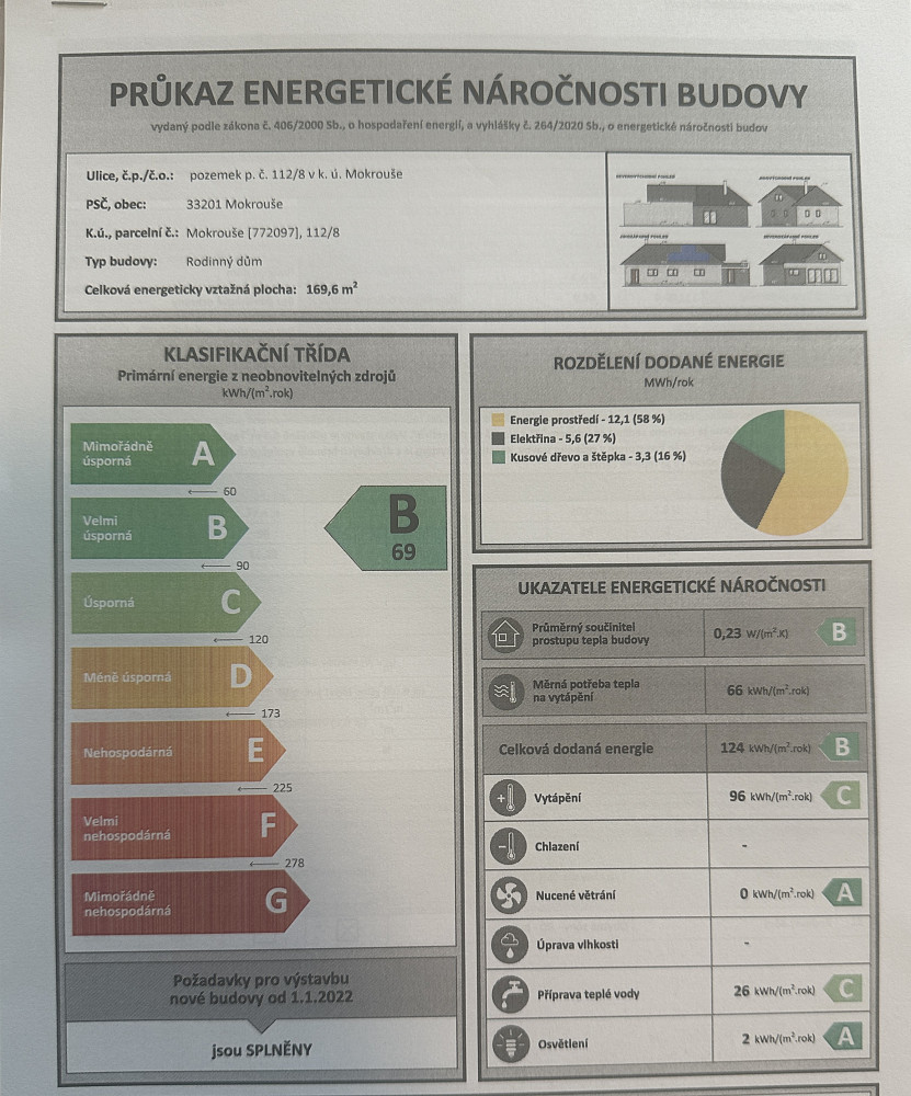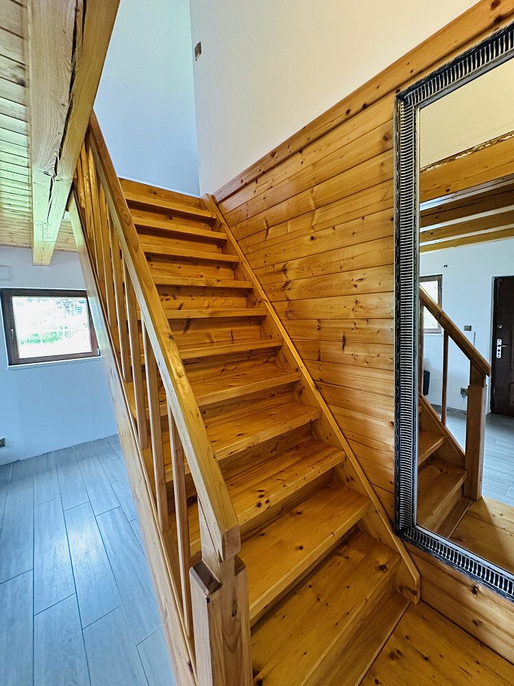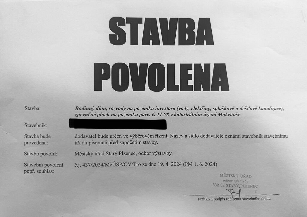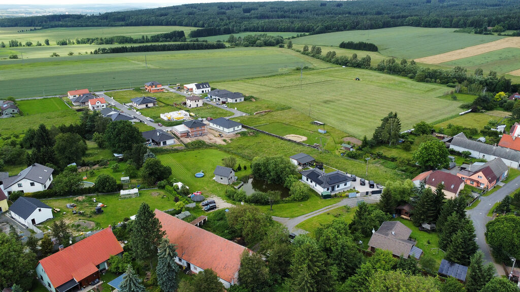 Součástí pozemku je kvalitně postavená dřevostavba o užitné ploše cca 50 m², která byla realizována jako první etapa plánovaného rodinného domu. Nejedná se o rekreační chatu – stavba je konstruována jako plnohodnotné celoroční bydlení s nadstandardní skladbou obvodových stěn, nízkou energetickou náročností a připraveností pro následné rozšíření podle platného stavebního povolení.