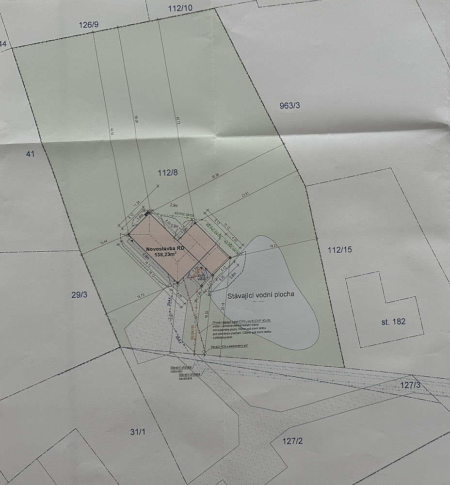 Na pozemku se nachází dřevostavba o zastavěné ploše 30 m². Na tuto stavbu je vyhotovena projektová dokumentace a vydáno platné stavební povolení pro její rozšíření na rodinný dům o celkové dispozici 4+1 s podkrovím. Rodinný dům, na který je vystavené platné stavební povolení, má zastavěnou plochu 140 m².