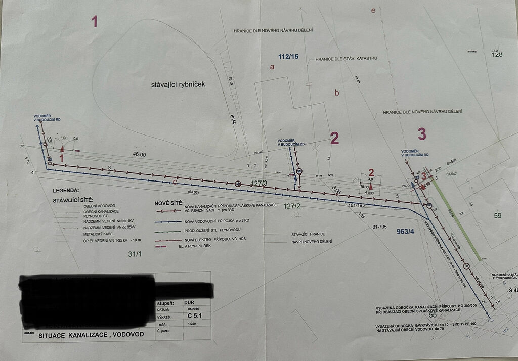 K hranici pozemku vede asfaltová komunikace. Je napojen na elektřinu (230-400V), veřejný vodovod a veřejnou kanalizaci. Součástí pozemku je také přírodní jezírko o rozloze 310 m², které přispívá k příjemnému prostředí a možnostem pro rekreační využití. Součástí prodeje je i odkup podílu příjezdové cesty, vyznačeno na obrázku.