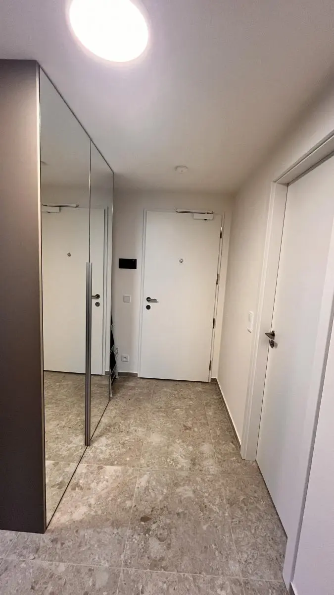 Tento moderně byt 2+1 se nachází v 6. podlaží novostavby v Modřanech, v Praze 4. Jedná se o nově dostavený moderní dům. Vytápění zajišťuje účinný systém podlahového vytápění. Byt má 2 terasy, ze které si můžete vychutnat pohled na okolní krajinu. Díky výtahu je přístup do bytu velmi pohodlný a bezbariérový.