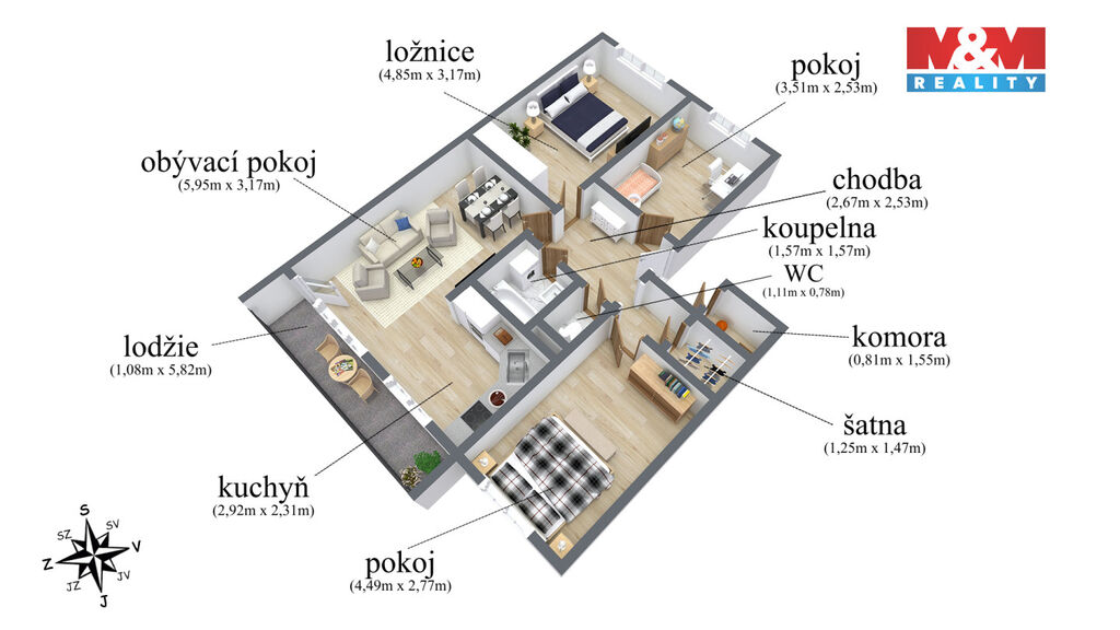 Hledáte prostor, který vám jiné byty nenabídnou? My ho pro vás máme. Nabízíme byt 4+1 v družstevním vlastnictví o celkové ploše 86 m², umístěný v předposledním patře revitalizovaného panelového domu v Mostě pod správou SBD Krušnohor. Dispozice je velmi praktická – velká vstupní chodba, tři samostatné pokoje a obývací pokoj propojený s kuchyní, kde najdete novou kuchyňskou linku s vestavěnými spotřebiči (trouba, myčka, digestoř, mikrovlnná trouba i vestavěná lednice). Z obývací části je vstup na zasklenou lodžii s příjemným výhledem na široké okolí. K bytu náleží komora v bytě, druhá komora na chodbě před bytem a sklepní kóje, takže o úložný prostor je postaráno. V okolí je kompletní občanská vybavenost – školy, školky, MHD, obchody i služby v docházkové vzdálenosti. Rádi vám také nabídneme optimální financování. Pro více informací neváhejte kontaktovat makléře a přijďte se podívat na vlastní oči. Třeba právě zde najdete svůj nový domov.