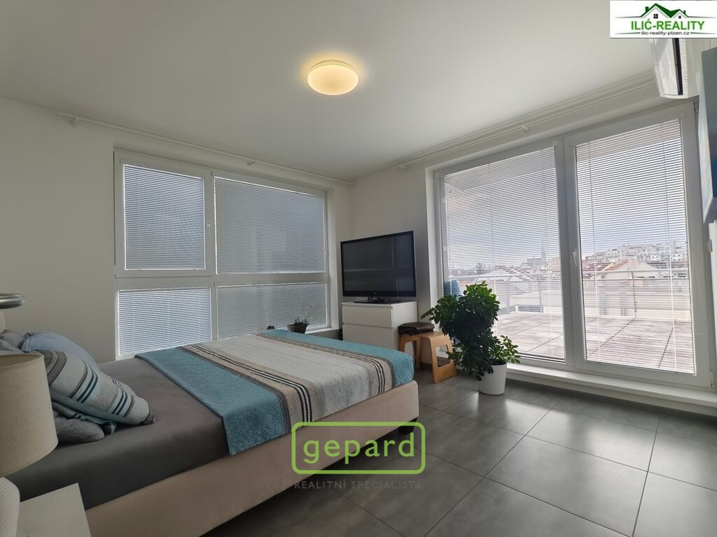 K bytu náleží terasa o velikosti 60 m² s přístupem přímo z bytu, která nabízí krásný výhled na Plzeň. Součástí nabídky jsou také dvě parkovací stání a sklep o velikosti 8 m².