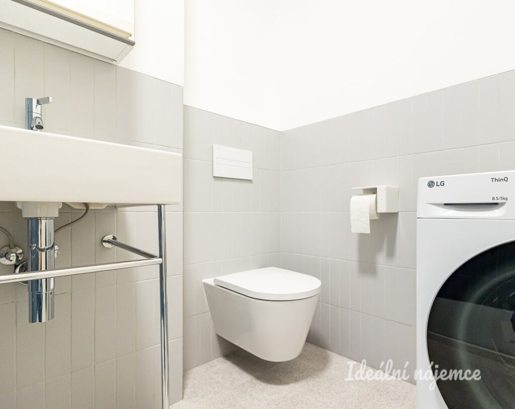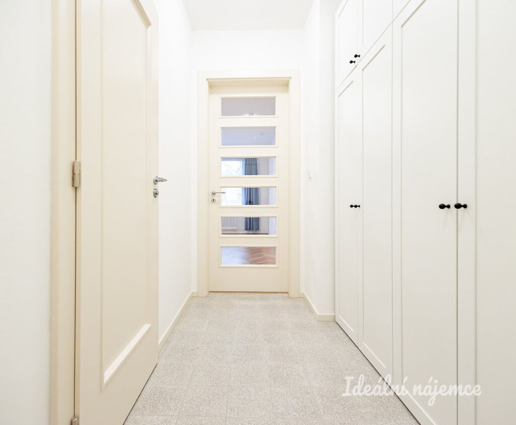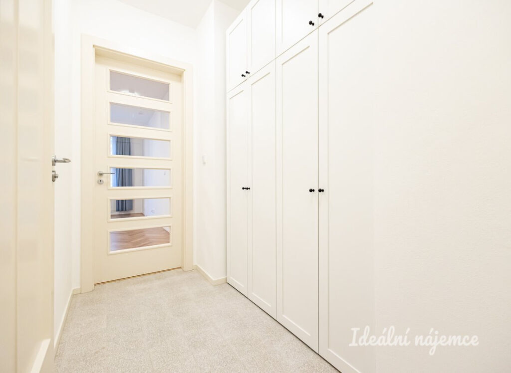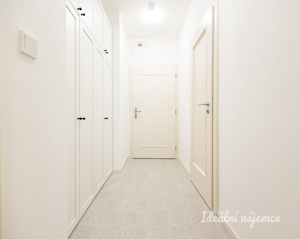 Byt se nabízí nevybavený, takže si ho můžete zařídit dle svých preferencí. Kuchyně disponuje lednicí, myčkou, elektrickou troubou, indukční varnou deskou, mikrovlnnou troubou a digestoří. Obývací část je nezařízená a v předsíni najdeme prostornou šatní skříň. V koupelně je sprchový kout, umyvadlo, zrcadlo, koupelnová skříňka, pračka kombinovaná se sušičkou a závěsné WC.