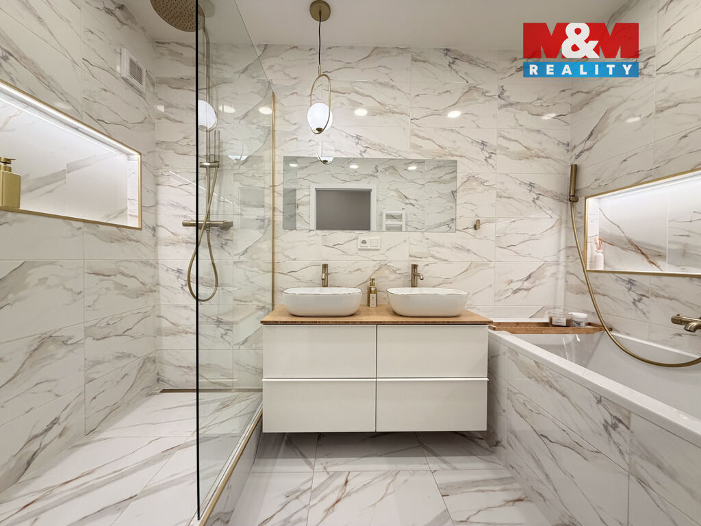 Exkluzivně nabízíme k prodeji byt v osobním vlastnictví o velikosti 4+1, s lodžií, o celkové výměře 80 m2, po velice pečlivé, designové, do detailu zhotovené rekonstrukci. Byt se skládá z kuchyně s vestavnými spotřebiči a velkým množstvím úložných skříněk, na ni navazujícího prostorného obývacího pokoje s jídelním stolem a dále tří ložnic, z nichž první slouží jako manželská ložnice, druhá jako dětský pokoj a třetí má nyní funkci dámské šatny s kosmetickým stolkem. Velkoryse pojatá koupelna disponuje dvěma umyvadly, sprchovým koutem i vanou. Hned vedle koupelny je samostatné WC. Další úložné prostory se pak nacházejí v předsíni, tak jako i dvě menší komory, ve kterých jsou umístěny pračka se sušičkou a v druhé technické zázemí. K dispozici je také nadstandardně velký sklep s možností uložení kočárku, kol atd. Dostupnost MHD, tak jako blízkost školek, škol i veškerých služeb je samozřejmostí.