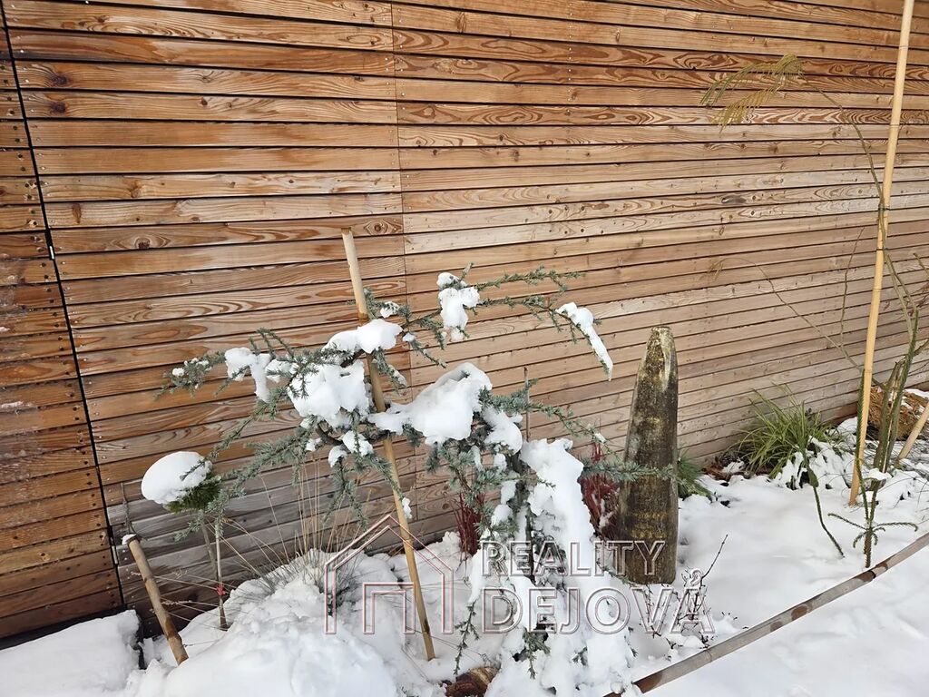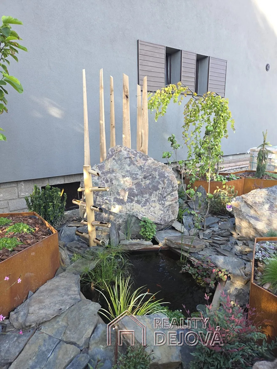 Součástí nemovitosti je pečlivě upravená zahrada, která v posledních letech prošla novým založením. Významným prvkem zahrady je moderní bazén vybudovaný v roce 2025, který díky rozměrům 7,5 × 3,5 metru nabízí příjemně velký prostor pro koupání i společné letní radovánky. Bazén je navíc opatřen kvalitním zastřešením, které prodlužuje koupací sezónu, chrání vodu před nečistotami a umožňuje komfortní využití i za horšího počasí. Kromě bazénu se na zahradě nachází také dětská prolézačka s domečkem a klouzačkou a praktický zahradní domek vhodný k uskladnění zahradního vybavení či dřeva ke krbu. Celý pozemek působí harmonicky a nabízí klidné zázemí pro každodenní život.