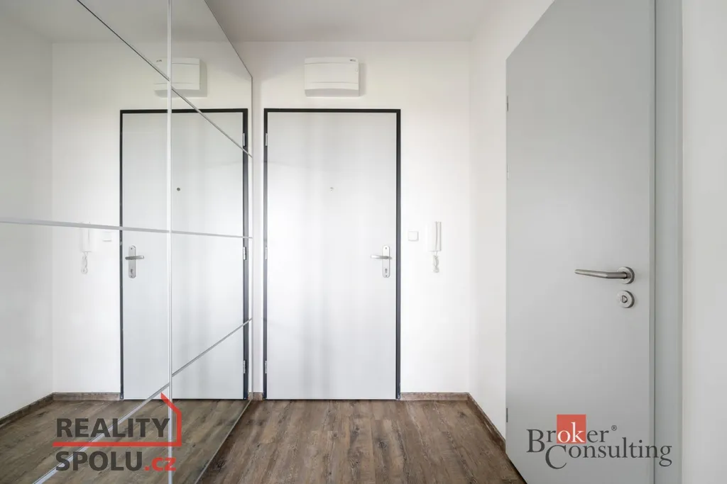 Při vstupu do bytu Vás přivítá prostorná předsíň s praktickou vestavěnou skříní, která poskytuje dostatek úložného prostoru. Hlavní obytnou část tvoří světlý a vzdušný obývací pokoj se zařízeným kuchyňským koutem. Kuchyně je kompletně vybavena spotřebiči, včetně sklokeramické varné desky, elektrické trouby, digestoře, lednice, mikrovlnné trouby. V bytě jsou již připraveny rozvody pro snadné připojení televizoru a vysokorychlostního internetu. Okna jsou opatřena praktickými žaluziemi den a noc, které zajistí příjemné prostředí v každé denní době. Obývací pokoj je vybaven jídelním stolem, konferenčním stolkem, komodou a třemi židlemi, což vytváří ideální prostor pro odpočinek i práci.