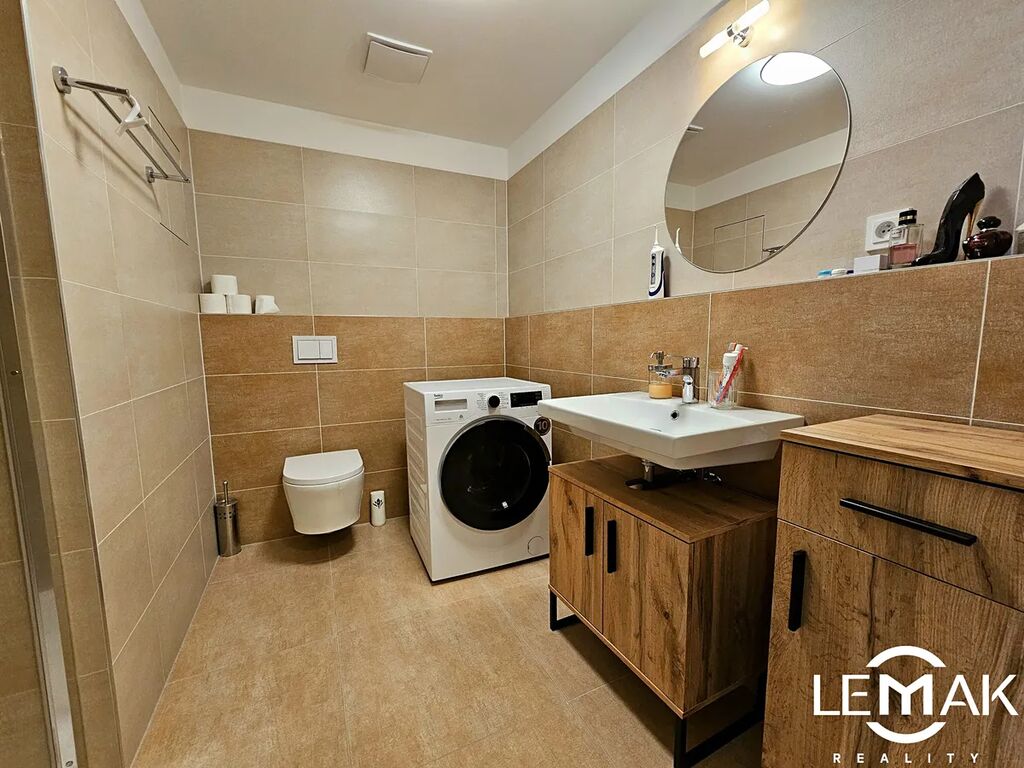 Byt má výměru 39 m² + 10 m² má terasa a bude se pronajímat částečně zařízený. Bytová jednotka se skládá z předsíně s botníkem, samostatné šatny se šatním systémem, prostorné koupelny se sprchovým koutem a WC. Hlavní obytná místnost poskytuje dostatek prostoru, najdeme zde kuchyňskou linku na míru se skříňkami až po strop , linka je vybavena indukční deskou, horkovzdušnou troubou, digestoří, mikrovlnnou troubou a kombinovanou lednicí.