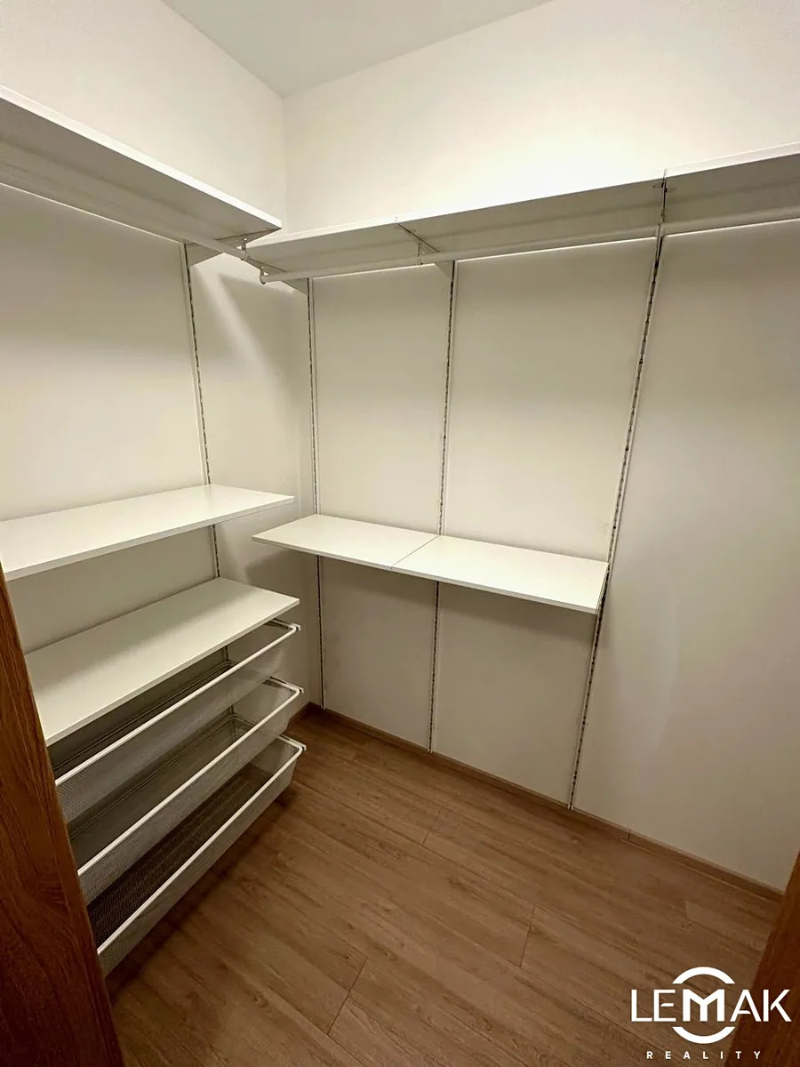 V celém bytě je podlahové topení. K bytu také náleží sklepní kóje (3 m²) a vnitřní garážové stání za cenu 1.700 Kč. Garážové stání není podmínkou pronájmu.