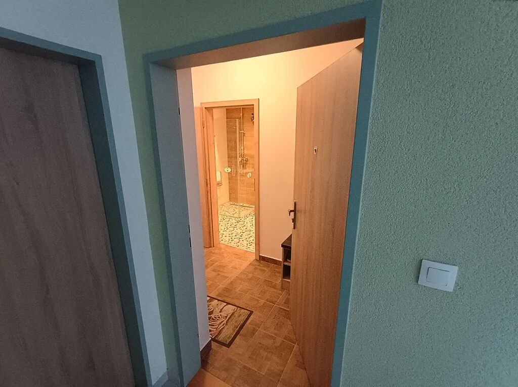 Nabízíme Vám příležitost získat nový a zařízený byt 2+kk v přízemí menšího bytového domu na okraji města Trhové Sviny. Dům byl dokončen v roce 2021. Byt je kompletně zařízen a nebyl dosud užíván. Vše je tedy nové a nepoškozené. Prostorové uspořádání bytu je následující. Ze společné vstupní chodby v přízemí domu je vstup do zádveří bytu. Koupelna je prostorná a je vybavena sprchovým koutem, umyvadlem, bidetem a WC. V koupelně je dále umístěna automatická pračka. Na stěně je kombinovaný topný žebřík, podlaha má elektrické podlahové vytápění. Chodbou s vestavěnými skříněmi je dále přístup do velkého pokoje s vybavenou kuchyňskou linkou. Dále je přes tento pokoj přístup do ložnice. V ložnici je velká postel s elektrickým polohováním a zdravotní matrací. Před okny jsou osazeny venkovní elektrické žaluzie. Vybavení je dobře patrné z fotek. K bytu dále patří menší komora, společná místnost na kola a kočárky. Součástí ceny je jedno venkovní parkovací stání před oknem z pokoje. Je možné si dokoupit i druhé venkovní parkovací stání. Byt není zatížen žádnou právní vadou ani zástavou a je tedy možné financování úvěrem.