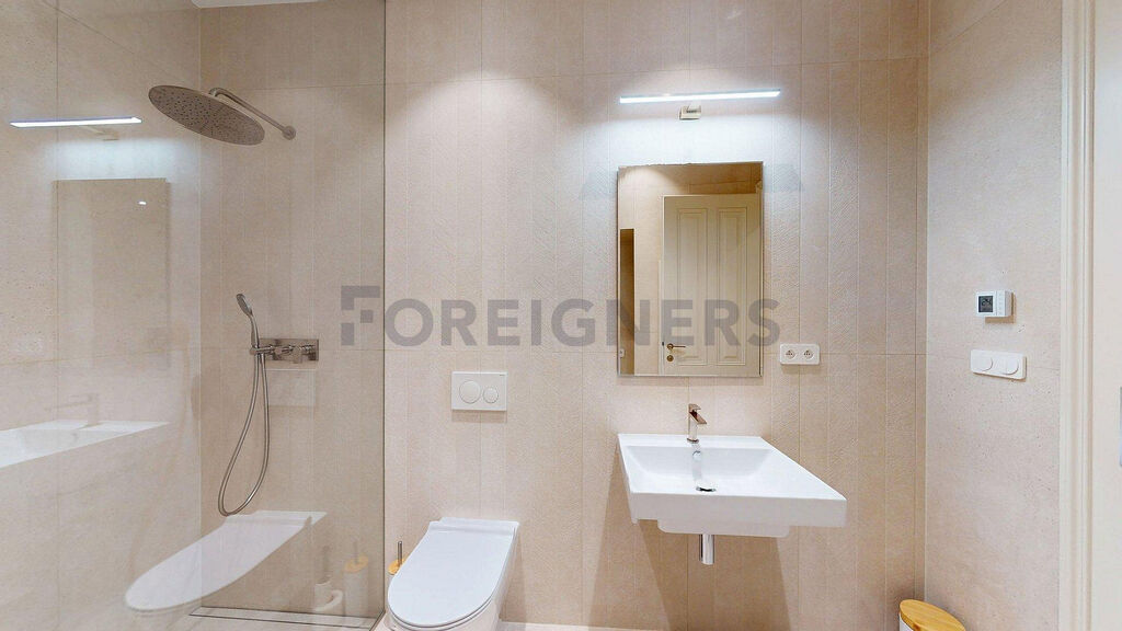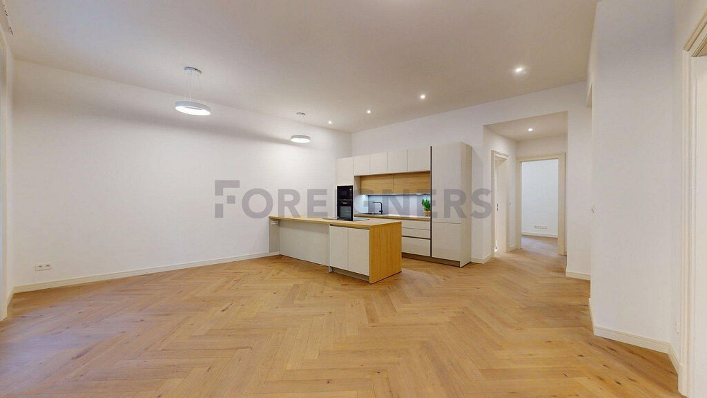 Byt bude plně vybaven kuchyňskou linkou značky STOSA včetně vestavných spotřebičů. Styl vybavení odpovídá vysokému standardu celého domu – dřevěné parkety, repasované zárubně a dřevěné dveře, kvalitní osvětlení s možností nastavení odstínu a jasu. V bytě je optický kabel, datové rozvody, videotelefon, podlahové topení s termostatem. Dovybavení bytu po dohodě s pronajímatelem možné.