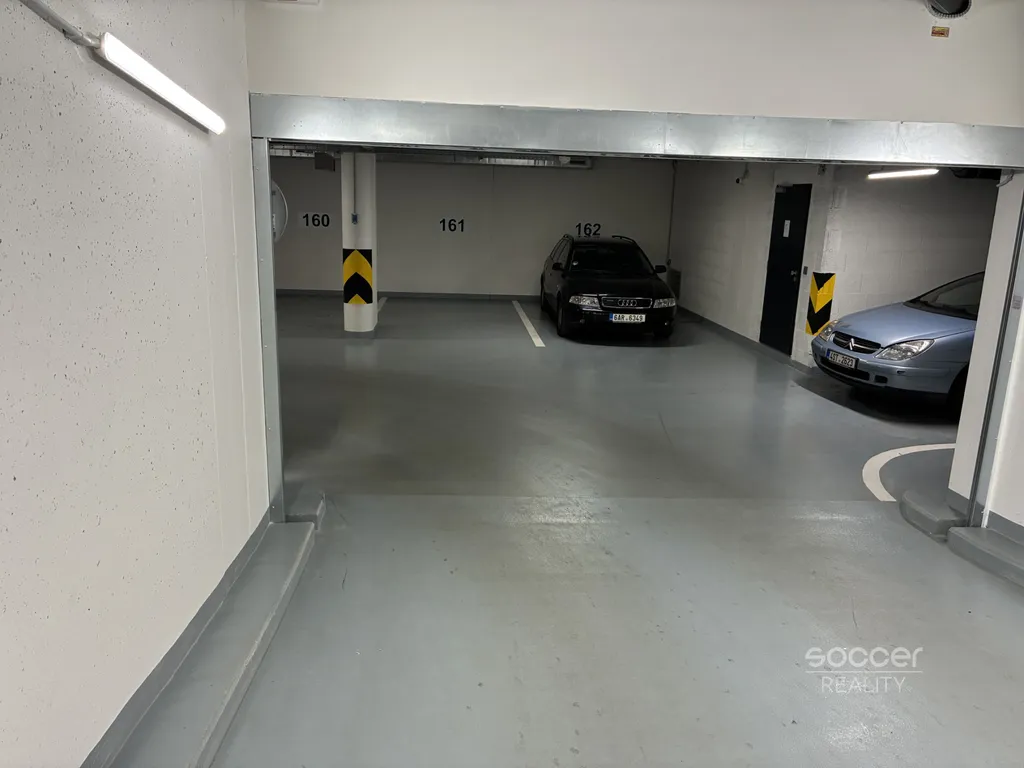 Stání se nachází ve 2. podzemním podlaží v moderní a udržované garážové hale. Díky umístění přímo naproti vjezdu je parkování velmi pohodlné, bez nutnosti složitého manévrování.