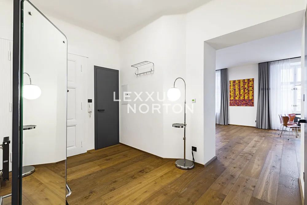 Nabízíme k prodeji prostorný byt 3+kk o rozloze téměř 94 m² v pátém patře secesního domu s výtahem. Nemovitost prošla kompletní rekonstrukcí a nabízí velkorysý obývací pokoj propojený s kuchyní a jídelnou, dvě ložnice, koupelnu, samostatné WC, komoru a vstupní halu. Hlavní obytný prostor je orientován na východ do ulice s výhledem na Španělskou synagogu, ložnice směřují na západ do tichého vnitrobloku, přičemž z menší z nich je vstup na balkón.