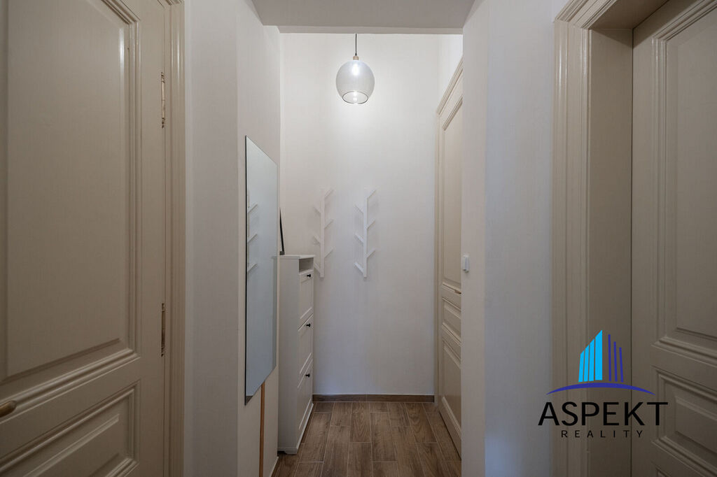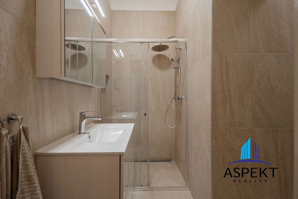 Byt je zařízený a nabízí moderní kuchyňskou linku vybavenou všemi potřebnými spotřebiči, jako jsou lednička, sporák, trouha, myčka a mikrovlnná trouba. Pro pohodlné stravování je k dispozici stůl se židlemi a útulné sofa pro odpočinek. Koupelna je vybavena sprchovým koutem, toaletou a pračkou, což přispívá k komfortnímu bydlení. V ložnici najdete kvalitní postel a prostornou skříň pro úložné potřeby.