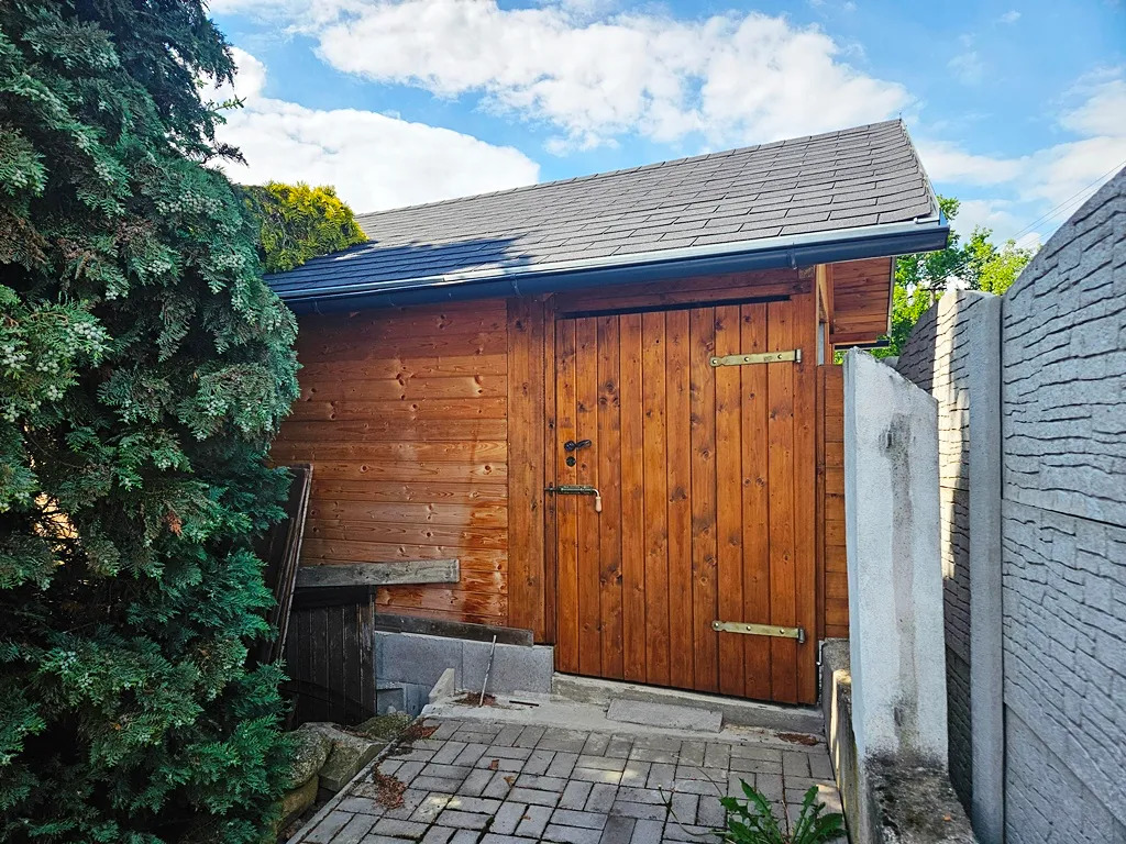 Na pozemku je studna, voda do domu zavedena z obecního vodovodního řadu. Odpady svedeny do septiku. K domu náleží terasa. Ze silnice je vjezd přímo do garáže. Na zahradě je přístavba pro zahradní nábytek. V dolní části kolna. V přední části je betonový plot + nová vrata. Obytná plocha chaty 75 m2, plocha zahrady 893 m2.
