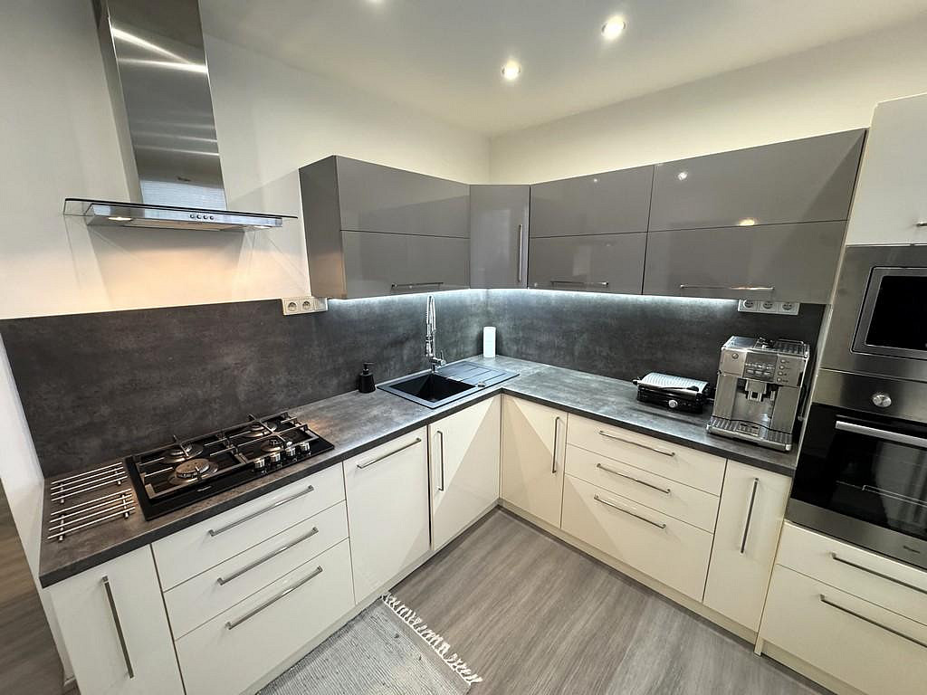 Bytová jednotka je kompletně zrekonstruovaná a je plně vybavena nábytkem i designovými svítidly viz níže.