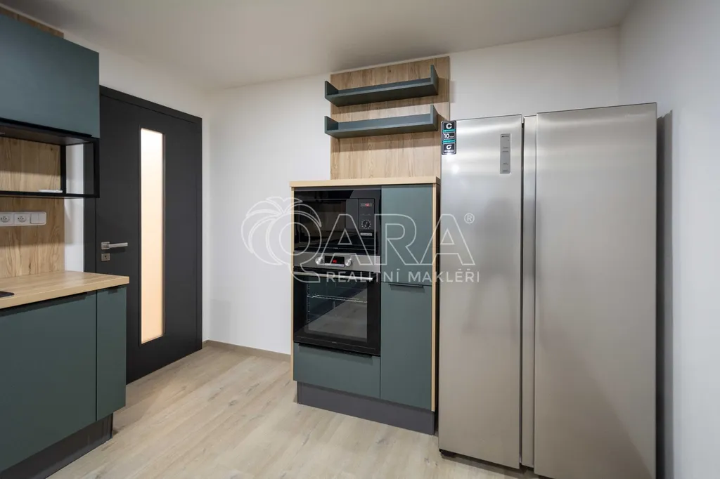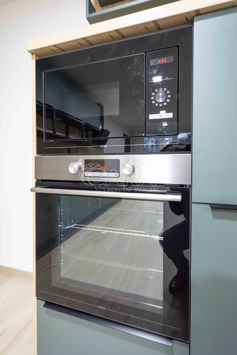 Vybavení bytu na fotografiích je součástí podnájmu: kuchyňská linka včetně spotřebičů: myčka, mikrovlnná trouba, el. trouba, indukční deska, digestoř, americká lednice s mrazákem. V koupelně starší pračka na dosloužení. Na chodbě bude dodělaná vestavná skříňka.