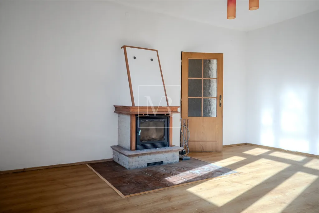 Přízemí: dva velké pokoje (jeden s krbem), samostatná kuchyň, dvě komory, koupelna a wc