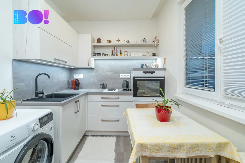 Byt prošel rekonstrukcí v roce 2020, v rámci které byla realizována výměna elektroinstalace, vodoinstalace, vybudována nová koupelna se sprchovým koutem, WC a umyvadlem. V chodbě jsou vybudované vestavné skříně, své místo má i pračka a sušička, kuchyňská linka byla zhotovena na míru s vestavěnými spotřebiči. V kuchyni a chodbě je nová plovoucí podlaha, v koupelně dlažba a v pokoji velmi zachovalé dřevěné parkety. Topení a ohřev vody je z dálkového zdroje. Byt je orientován na jižní světovou stranu, byt se nachází v přízemí panelového domu a náleží k němu i sklepní kóje.