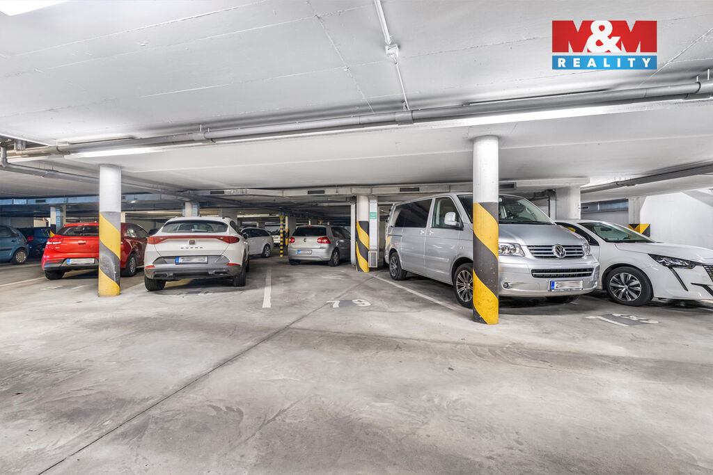 Součástí ceny je garážové stání v podzemní garáži s vraty na dálkové ovládání – žádné hledání místa po večerním návratu, pohodlný vstup suchou nohou domů.