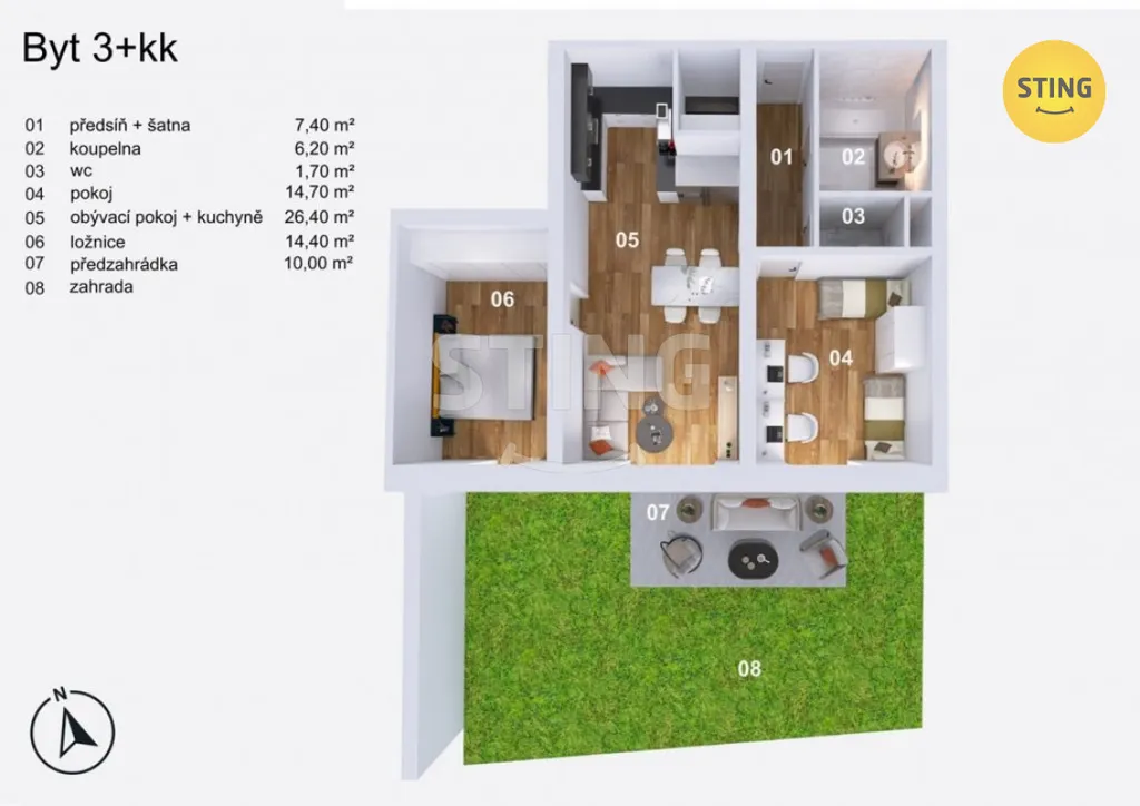 Projekt bude nabízet byty 1+KK, 2+KK a 3+KK které budou dodávány na klíč – hotové koupelny a kuchyně včetně spotřebičů, v ceně bytu budou vlastní kóje umístěné v bezprostřední blízkosti bytu. V domě bude myšleno i na bezbariérovost, k dispozici bude výtah. V areálu bude k dispozici zastřešené parkovací stání, které bude možno dokoupit.