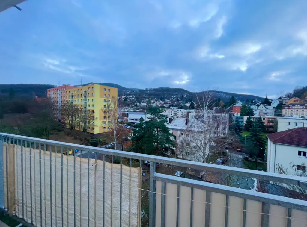 Pronájem bytu 2+1 s lodžií v ulici Kamenná, Střekov - Ústí nad Labem. Lodžie s výhledem na jížní stranu. Z oken výhled na Větruši.