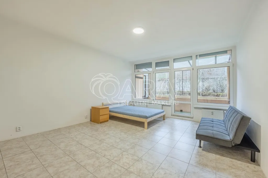 V zastoupení majitele Vám nabízíme velice dobře dispozičně řešený byt o dispozici 1+kk, nacházející se v přízemí velmi udržovaného domu ve Zbraslavi. Plocha bytu činí 32 m2 a skládá se z chodby (ve které jsou umístěné vestavěné šatní skříně), ze které se dostanete do krásného a slunného obývacího pokoje s velkým zastřešeným balkonem (orientován do klidné zahrady). V obývacím pokoji je kuchyň vč. ledničky a komod. Koupelna je přístupná z chodby a nabízí vanu a toaletu. Součástí bytu je nová postel a nový rozkládací gauč - možné odstěhovat ale preferujeme aby zůstali. V bytě jsou velká okna a je možné stáhnout rolety jak zde tak na balkoně - pro úplné soukromí. K bytu náleží i samostatná a bezpečná koje např. pro umístění kola apod.