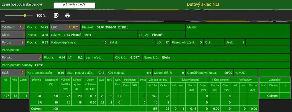 - p.č. 724/1 vedená jako lesní pozemek o celkové výměře 3 536 m2, vlastníme podíl 1/3 tedy 1 179 m2,