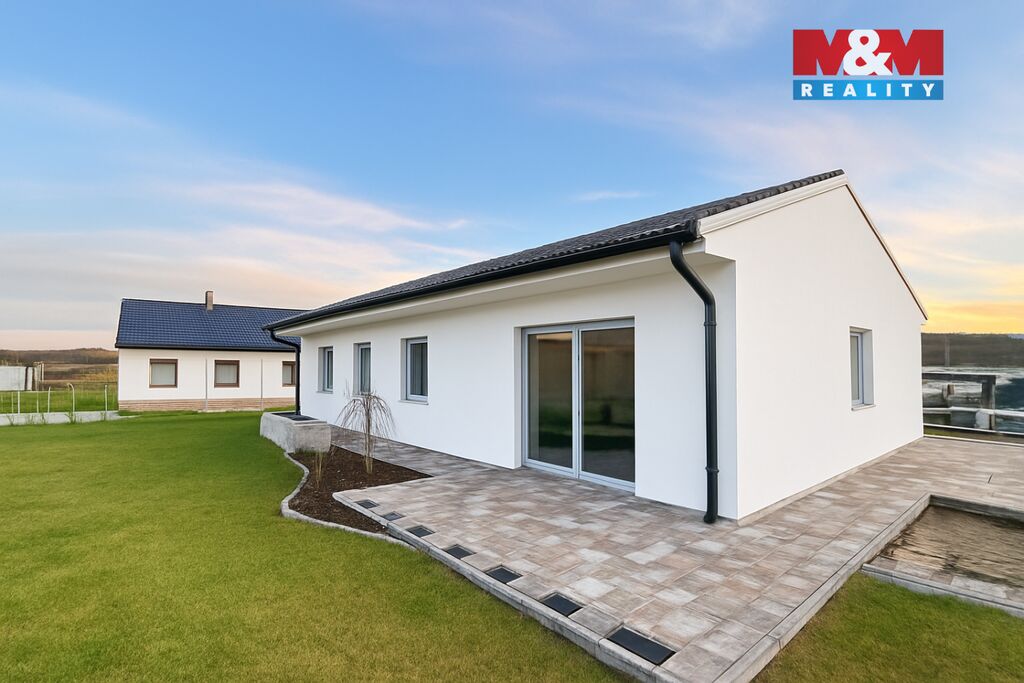 Dominantou domu je prostorný obývací pokoj s krbovými kamny, propojený s kuchyňským koutem a přímým vstupem na zahradu. Součástí kuchyně je také praktická spíž. Dále dům nabízí 2 dětské pokoje, ložnici se šatnou, prostornou koupelnu s vanou i sprchovým koutem, dvě toalety a technickou místnost se vstupem na zahradu. Na zahradě se nachází pergola, ideální pro posezení, grilování a relax.