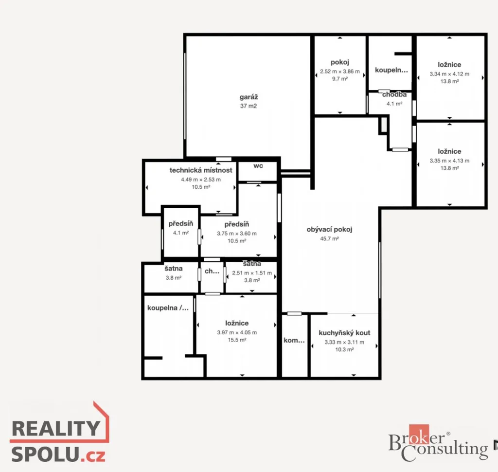 mimořádně komfortní dispozice 5+kk s dostatkem soukromí pro každého