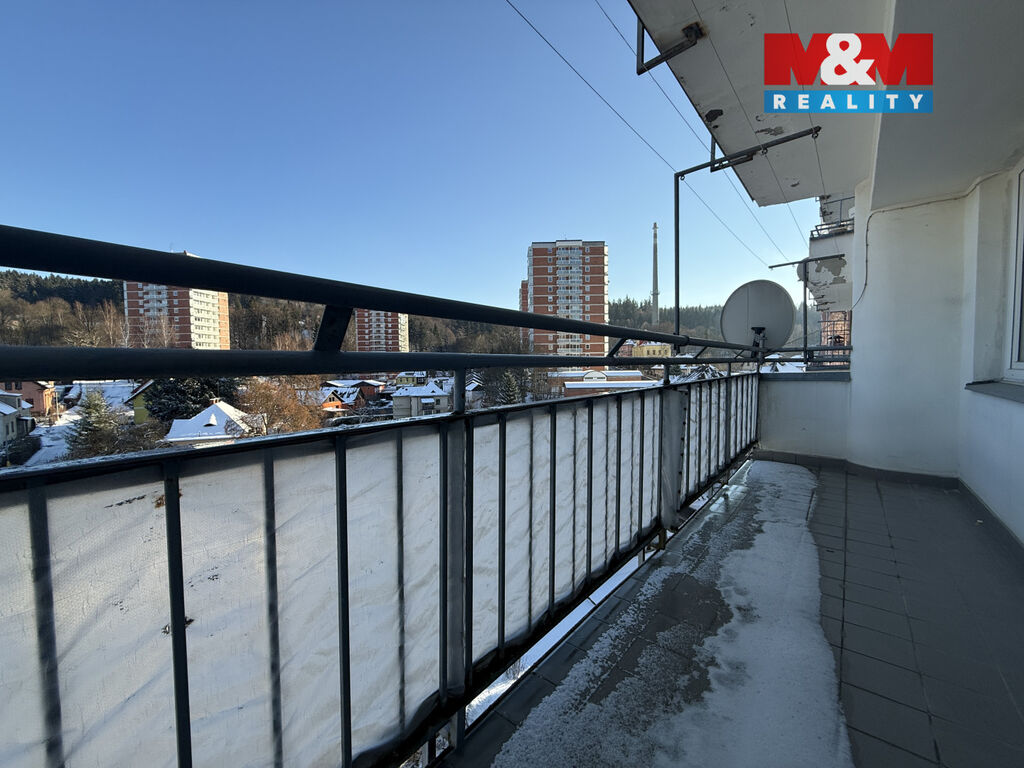 Byto o celkové ploše s příslušenstvím 75 m2 a dispozicí 2+1 se nachází v 6.NP. Předsíň s úložným prostorem navazuje na chodbu s komorou, která propojuje vstupy do místností. Velká kuchyně s jídelní částí, výhledem do zeleně a vstupem na lodžii. Koupelna s vanou, umyvadlem a místem na pračku a sušičku. Samostatná toaleta. Obývací pokoj s možností oddělení pro další místnost. Ložnice se samostatným vstupem. Podlahy PVC a keramická dlažba, okna plastová. Byt v udržovaném stavu. K bytu náleží sklepní kóje. Na domě v současné době probíhá renovace lodžií a fasády. Veškerá občanská vybavenost v místě. V blízkostí jablonecká přehrada i plavecký bazén.