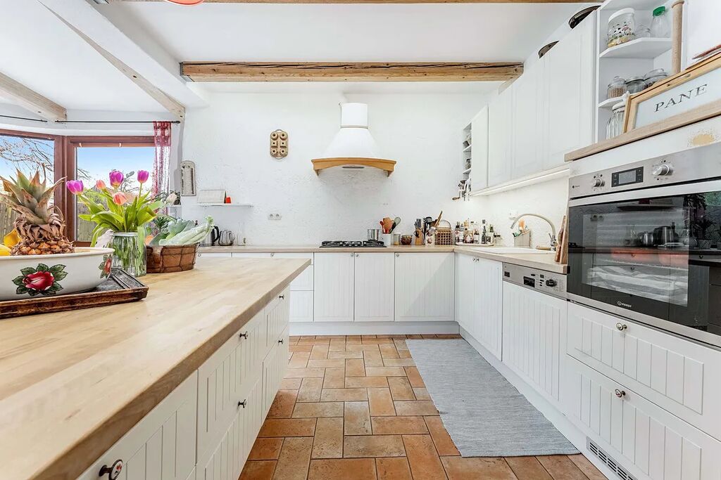 Komfort & Technologie: Užijte si dokonalou tepelnou pohodu díky kombinaci plynového kondenzačního kotle, podlahového vytápění a centrálně umístěných krbových kamen, které nejen vytopí, ale i dodají interiéru nezaměnitelnou atmosféru. Na podlahách vládne keramická dlažba.