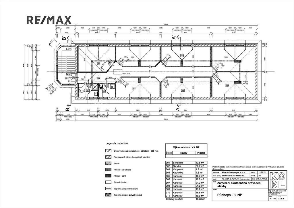 302 Chodba: 30,7 m² – centrální komunikační zóna s možností recepce nebo čekárny