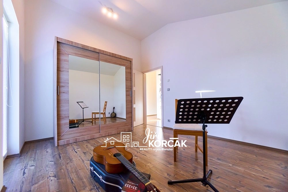 Uvnitř najdete prostorný obývací pokoj volně navazující na kuchyni, ložnici, dětský pokoj i velmi hezký pokoj