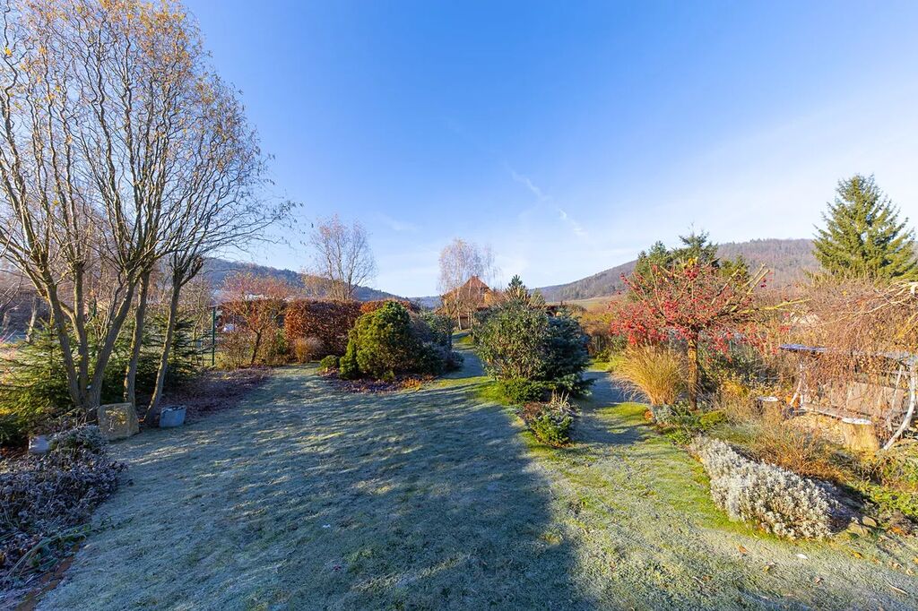 Pozemek o rozloze 1 505 m² je rovinatý, orientovaný na jihozápad a poskytuje velkorysý prostor pro zahradu, venkovní posezení i rodinné aktivity. Součástí venkovní části je také letní kuchyně, která skvěle rozšiřuje možnosti využití zahrady v průběhu celého roku.