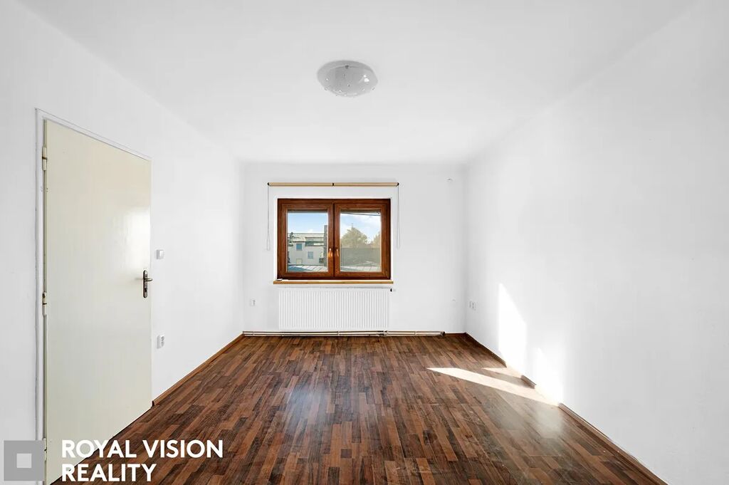 Dispozice: V přízemí se nachází vstupní chodba, prostorný obývací pokoj s kuchyňským koutem a velká koupelna s vanou a toaletou. V patře pak najdete chodbu a tři světlé pokoje, které lze využít jako ložnice, dětské pokoje nebo pracovnu.