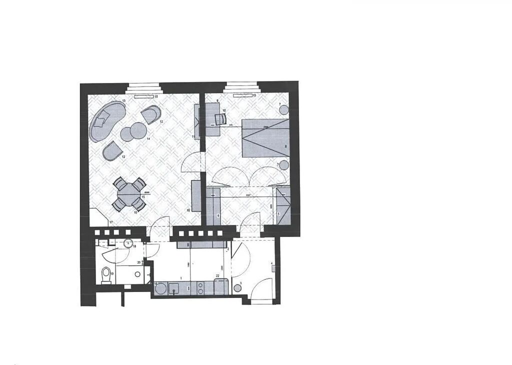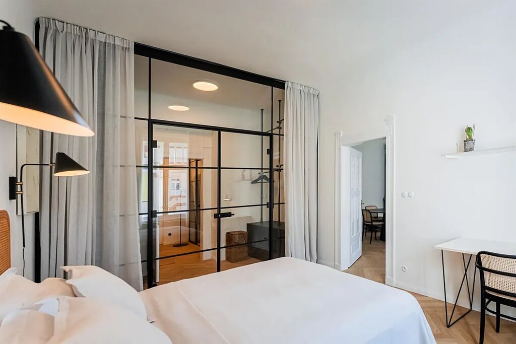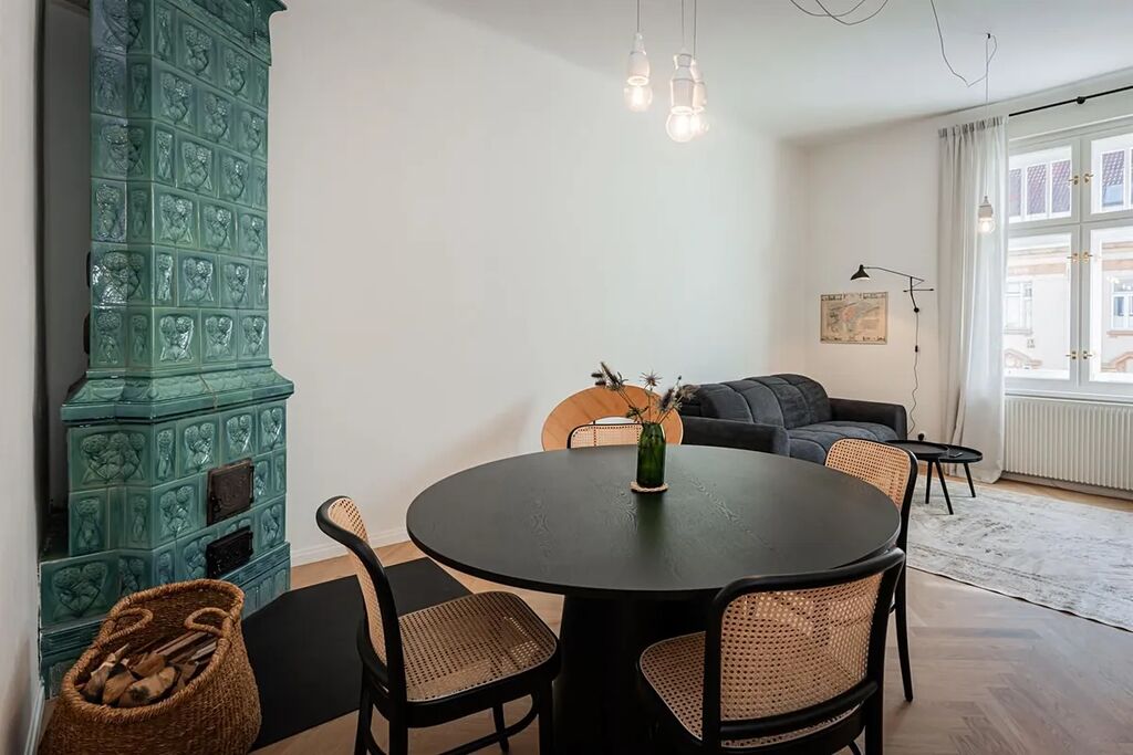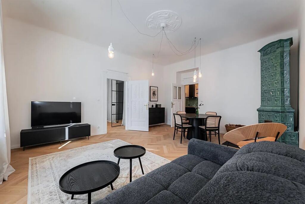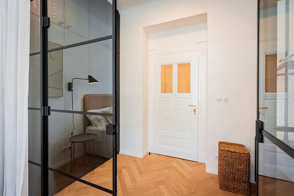 Interiér bytu dispozičně nabízí vstupní předsíň, krásný světlý obývací pokoj s jídelním prostorem a s původními funkčními kamny, modernou kuchyň plně vybavenou vestavěnými spotřebiči. Dále samostatnou ložnici, která disponuje vlastní šatnou. Komfortní koupelna je vybavená sprchovým koutem a toaletou. Zabezpečovací systém je součástí bytu.