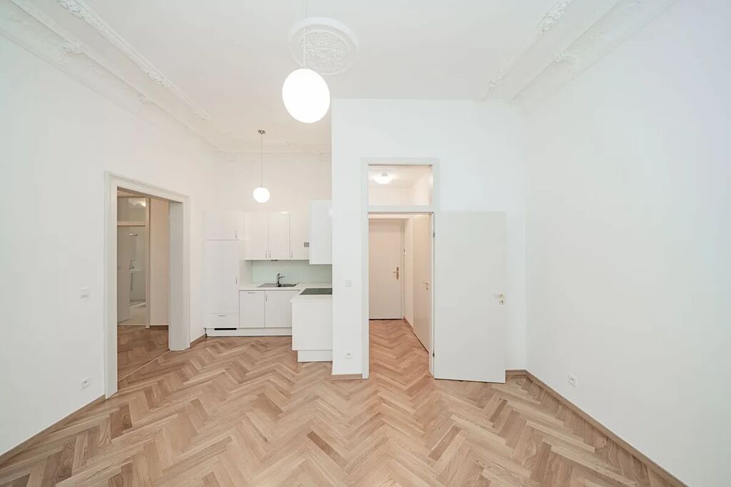 Rekonstruovaný elegantní byt 2+kk (1 ložnice, 1 koupelna), o celkové ploše 59m2, situovaný v 1. NP v kompletně zrekonstruovaném rezidenčním secesním domě, v prestižní lokalitě nedaleko Riegrových sadů, v ulici Balbínova Praha 2, Vinohrady.