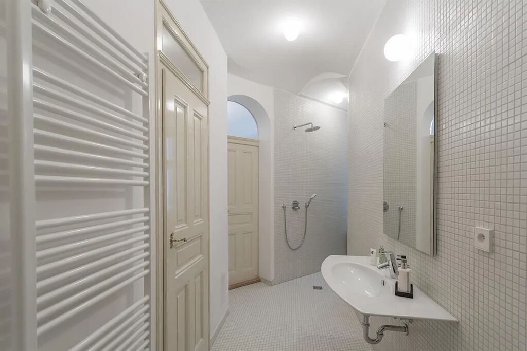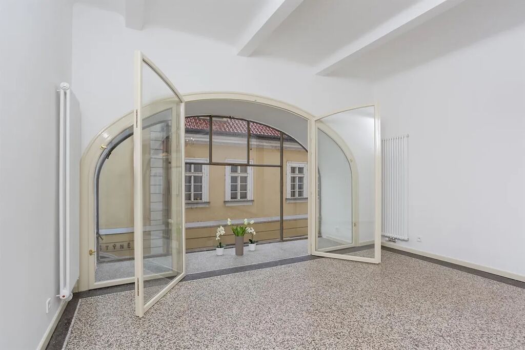 Zrekonstruovaný ateliér 2+1 se zimní zahradou, o celkové ploše 76 m2, se nachází v 1. patře reprezentativní budovy v atraktivní lokalitě Prahy 1, v ulici Martinská. Interiér je částečně zařízený a jeho dispozice sestává ze vstupní haly s vestavenou skříní, navazuje vstup do kuchyňské částí s kuchyňským koutem (trouba, sporák, malá lednice, myčka, digestoř), ze které je dále vstup do 2 dalších místností. Větší místnost se zimní zahradou. Ateliér disponuje koupelnou se sprchovým koutem, a toaletou. Podlahy v prostorách jsou teracové.