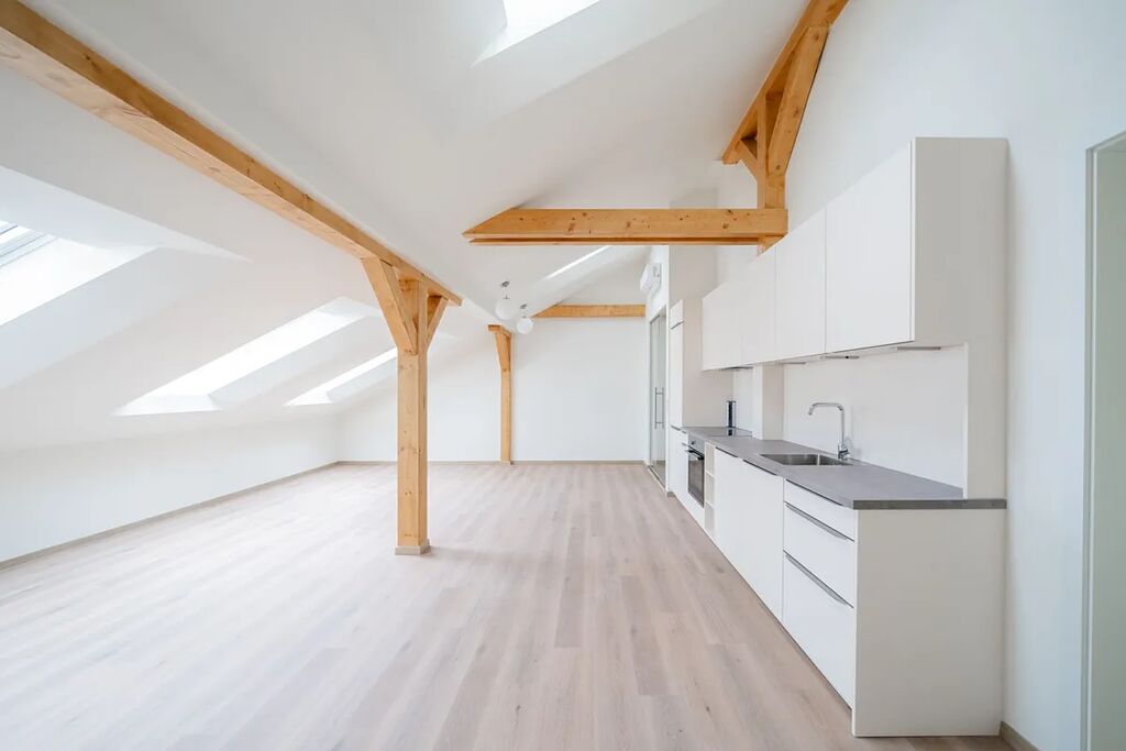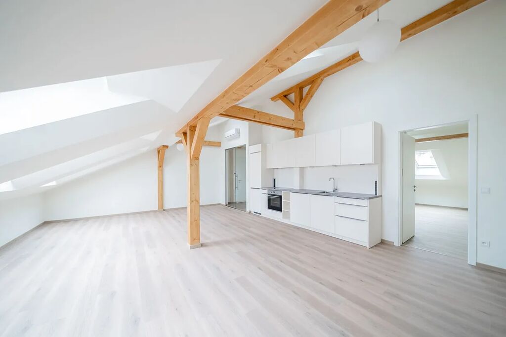 Atraktivní, klimatizovaný podkrovní byt 2+kk (1 ložnice, 1 koupelna), po rekonstrukci, o celkové ploše 79,32 m², je situovaný v 5.NP s výtahem, v budově v klidném vnitrobloku, která se nachází se ve vyhledávané lokalitě v Praze 1, na Václavském náměstí.