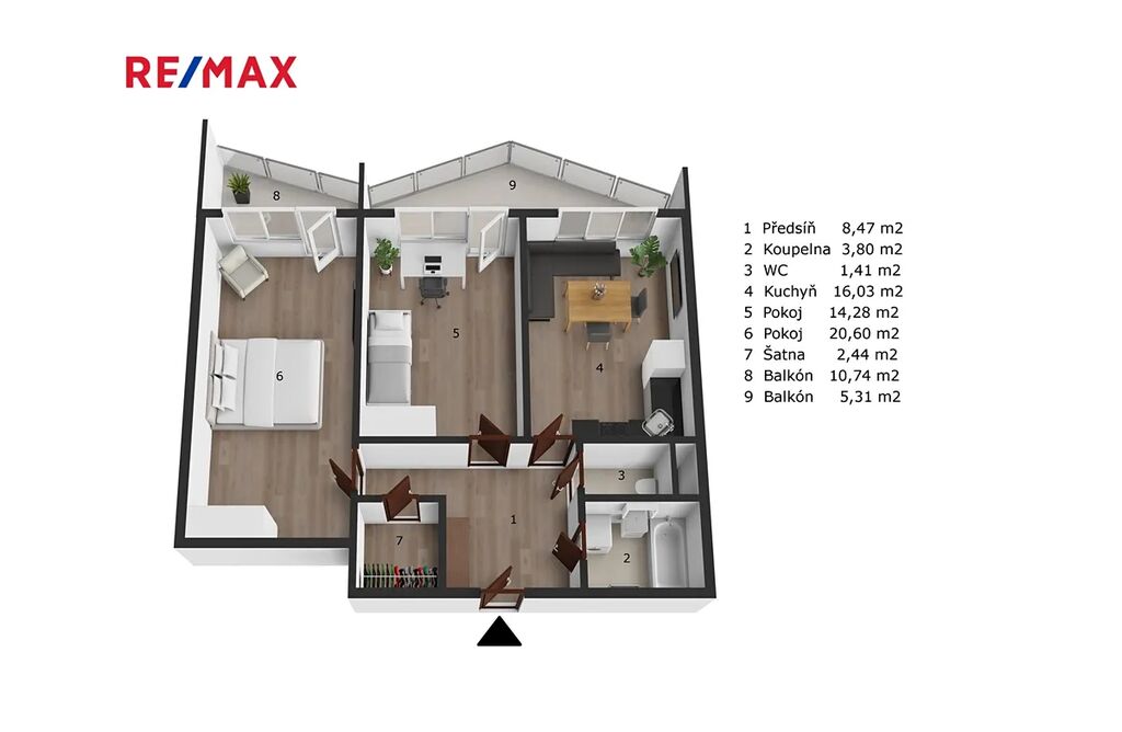 Byt prošel kompletní rekonstrukcí – nové podlahy, kuchyňská linka, koupelna, dveře.