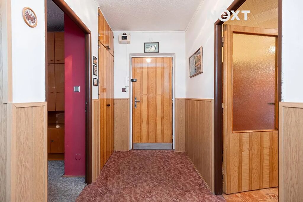 Dispozice bytu: vstupní chodba, koupelna, samostatné WC, obývací pokoj, kuchyně, ložnice se vstupem na lodžii 6,5m², pokoj. Byt má plastová okna směrovaná na východ a západ. K bytu náleží dva sklepy 1m² a 2m². Možnost parkování u domu.