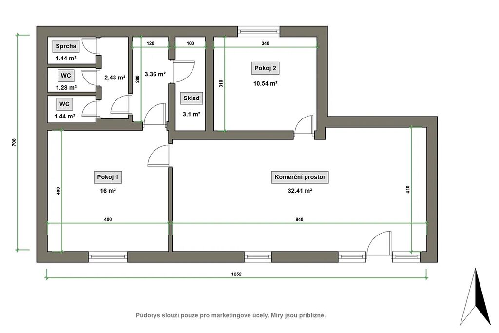 Flexibilní dispozice – možnost úprav podle potřeby nájemce (dle domluvy s pronajímatelem)