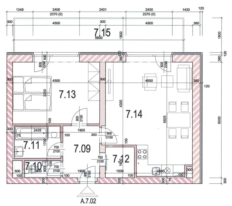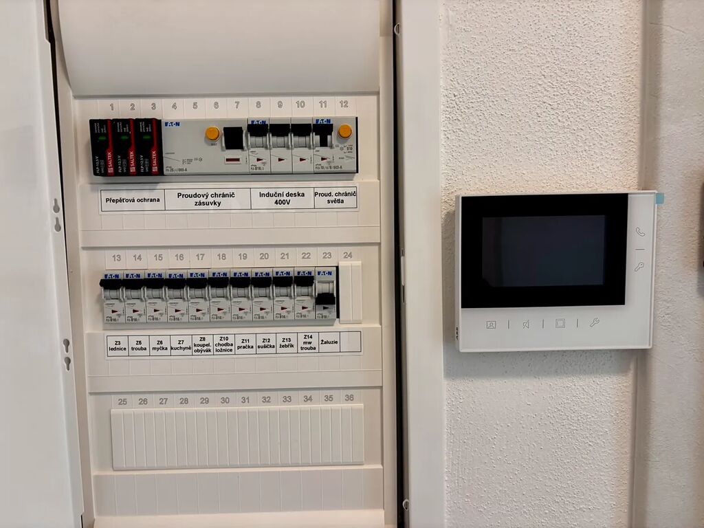 Místnostmi bytu jsou předsíň, samostatná koupelna, samostatné WC, obývací pokoj spojený s kuchyní, ložnice, šatna (nebo komora), dále balkon a sklepní kóje v přízemí bytového domu. Kuchyňský kout je vybaven novou kuchyňskou linkou s kvalitními spotřebiči značky Electrolux, včetně elektrické trouby, varné indukční desky, myčky nádobí, digestoře a vestavěné lednice, což zaručuje pohodlné vaření a přípravu jídel.