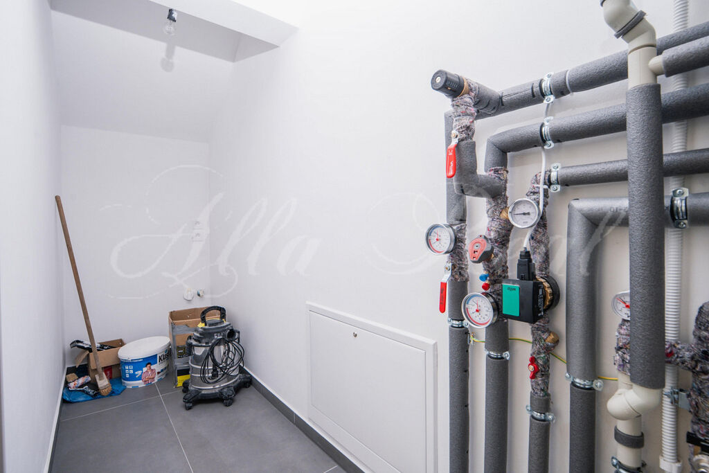 Dům byl dokončen v roce 2025, je tedy zcela nový a připravený k okamžitému nastěhování. Tepelnou pohodu zajišťuje podlahové vytápění, okna jsou opatřena trojskly, a venkovní žaluzie chrání před slunečním zářením i hlukem. Systém rekuperace vzduchu zaručuje čerstvý vzduch, zatímco vinylové podlahy jsou nejen estetické, ale i praktické na údržbu. Všechno je navrženo tak, aby poskytovalo maximální komfort.
