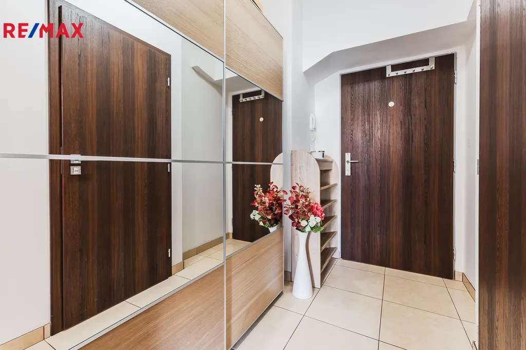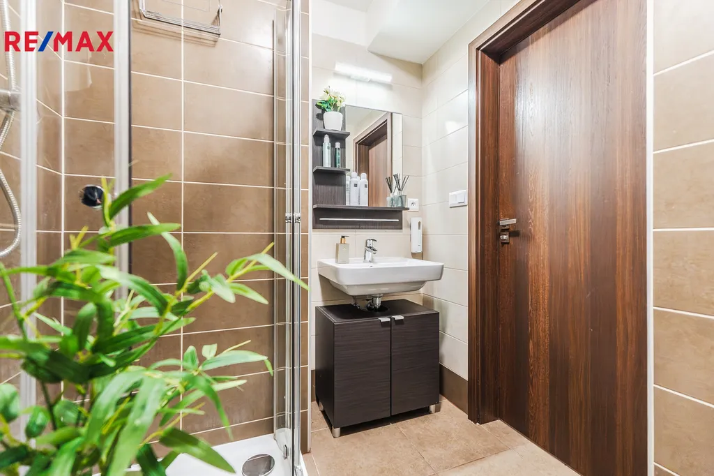 Byt se nachází ve 3. nadzemním podlaží a nabízí dobře řešený otevřený prostor s dostatkem denního světla díky velkým francouzským oknům. Okna směřují do zeleného vnitrobloku. Žádný rušný provoz, jen příjemné denní světlo a soukromí. Byt tvoří hlavní obytný prostor s oddělenou spací částí, předsíní a koupelnou. Součástí obývacího pokoje je moderní kuchyňská linka se spotřebiči, dining bar s elegantními židlemi, zónou pro TV a rozkládací pohovkou. Chytrá nika poskytuje soukromí pro spaní a je vybavena praktickými policemi. Koupelna je obložena moderními obklady a obsahuje sprchový kout. Je zde rovněž místo pro pračku. V předsíni jsou velké zrcadlové skříně s dostatečným úložným prostorem.