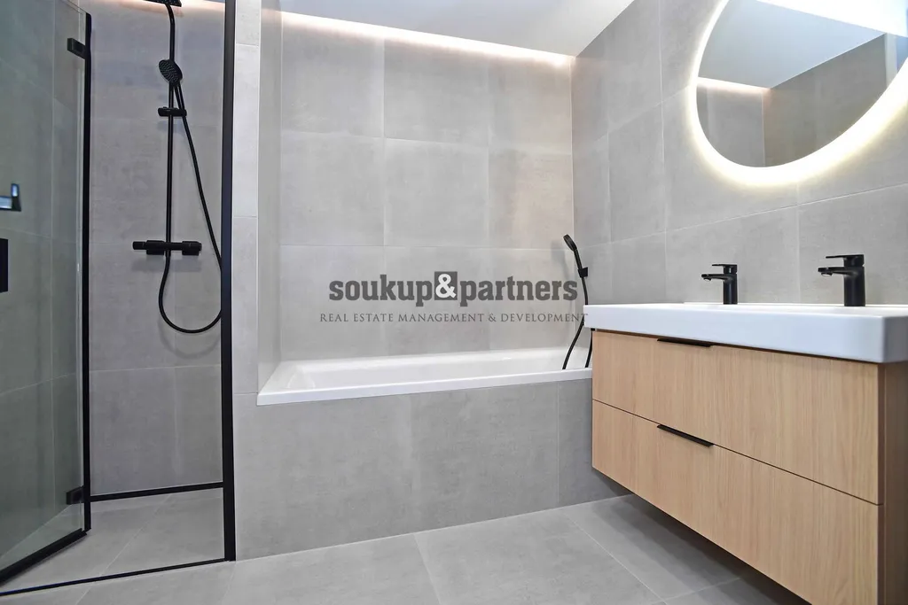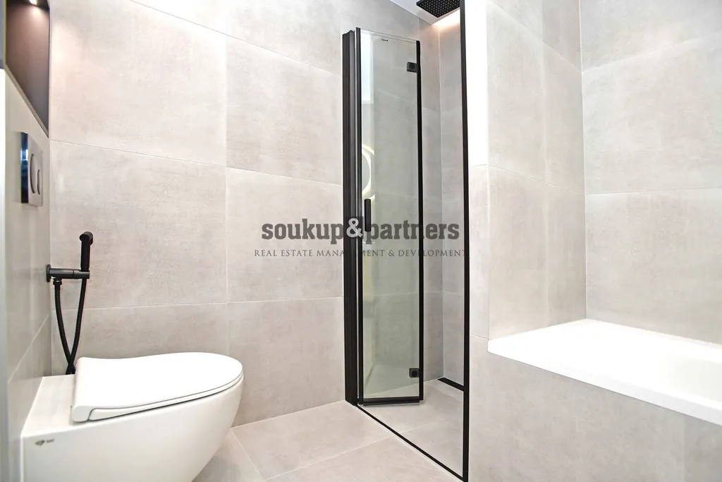 Byt 4+kk/ Terasa/ Komora - 118 m2, který se nachází v 5. patře cihlového domu s výtahem jen pár minut chůzí od Smíchovské náplavky. Byt je čerstvě po kompletní a velmi náročné rekonstrukci, dle architektonického a designového návrhu - vinylové podlahy v dekoru francouzského dubu, kuchyňská linka vč. vestavných spotřebičů ( indukční varná deska, digestoř, lednice s mrazákem, myčka, el. trouba, mikrovlná trouba), interiérové dveře vč obložek a designového kování, koupelna se sprchovým koutem i vanou a podlahovým vytápěním, 2 x wc vč. bidetové spršky. Nově všechny IS (elektřina, plyn, voda, odpady). Byt disponuje komorou s vodovodní i odpadní přípojkou na pračku a sušičku. Byt je vybaven novou klimatizací Daikin s on-line ovládáním přes aplikaci. Vytápění a teplou vodu zajišťuje nový plynový kondenzační kotel Baxi s on-line přístupem. Orientace terasy je JIŽNÍ s výhledem na Malvazinky. Byt má svojí půdu s klasickými stropními stahovacími schůdky. Dům prošel kompletní rekonstrukcí v roce 2005, kdy bylo nově vybudováno podkroví, jehož součástí je i tento byt. V posledních letech byl dům revitalizován - společné prostory, okna, vstup, střecha a výtah. Dům má perfektní polohu jen pár min. chůzí od nábřeží Vltavy a druhým směrem od Anděla. OV - možnost financovat hypotečním úvěrem, který rádi zařídíme. Pro více informací volejte manažera nabídky.