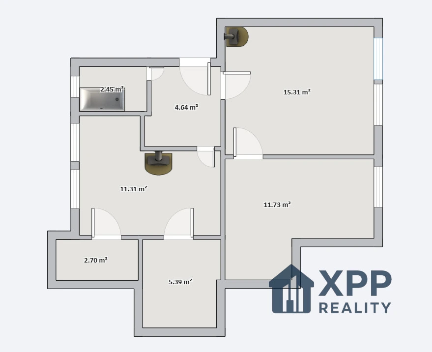 Byt tvoří předsíň, koupelna s vanou a toaletou, obývací pokoj, ložnice, samostatná kuchyně, spíž a menší místnost využitelná, jako pracovna či šatna. Jednotka je v původním stavu a představuje tak příležitost upravit si interiér přesně podle vlastních představ. Vytápění je řešeno lokálními kamny, ohřev vody zajišťuje elektrický bojler. Díky své dispozici a možnosti rekonstrukce nabízí byt flexibilní využití – pro vlastní bydlení i jako investiční nemovitost.