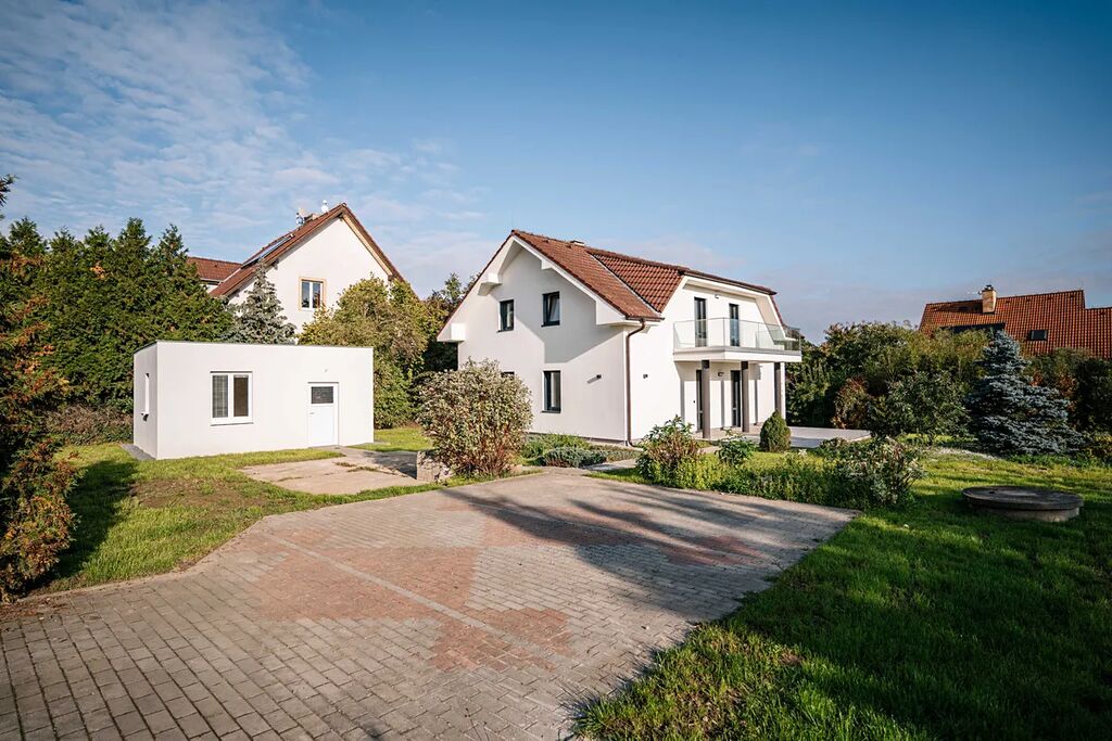 Na klidném místě v Dolních Břežanech, v části Zálepy, vznikl domov, který spojuje moderní design, promyšlenou dispozici a dotek přírody hned za plotem.