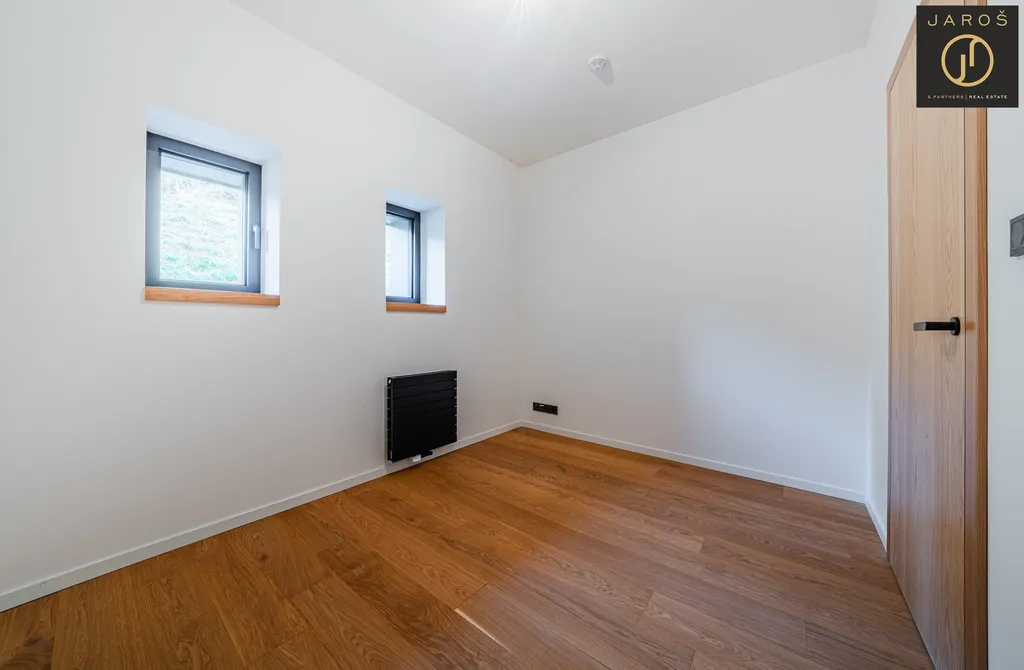 Apartmán disponuje prostorným obývacím pokojem s kuchyňským koutem, ložnicí, koupelnou a velkou komorou, která poskytuje nadstandardní úložný prostor nebo zázemí pro sportovní vybavení — lyže, kola či sezónní potřeby. Díky otevřené dispozici a velkoformátovým oknům působí jednotka vzdušně a nabízí příjemnou světelnost.